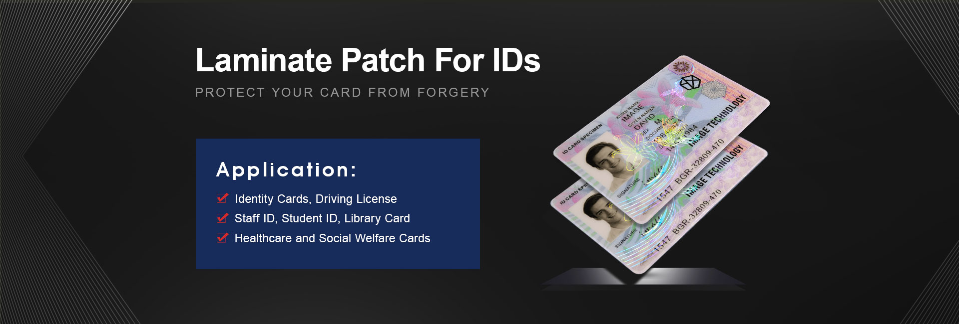 The ID card patch film integrates multiple optical security technologies, including overt, covert, and forensic-level encryption features, providing advanced anti-counterfeiting protection while maintaining a visually striking appearance.